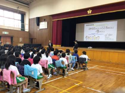 「みんなで考える 体のこと 心のこと 性のこと」〜みんなちがってみんはいい〜をテーマに第1回学校保健委員会を開催しました。あかね医院助産師の永井理恵子さんから、プライベートゾーン、性器の名称、命のはじまりかた、体の発達、性被害などについてのお話を聞きました。