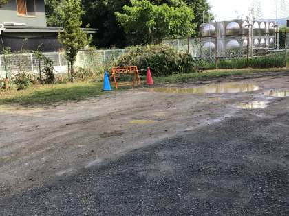 たくさんの方のおかげでこんなにきれいになりました。なお、西側駐車場は、大変ぬかるんでいるため、駐車の際にはお気をつけください。