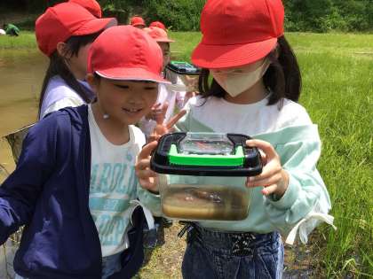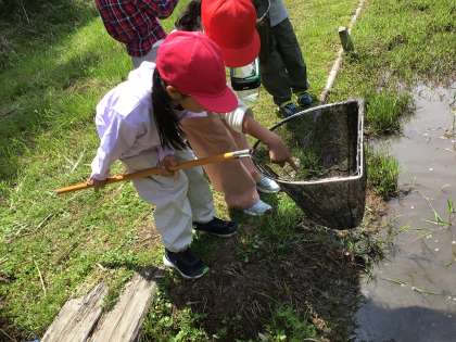 初めてのタモに最初は苦戦しながらも、慣れたら上手に使って全員が生き物を捕まえることができました。