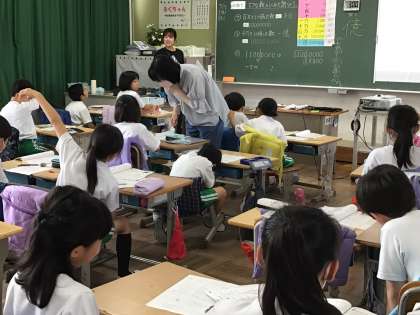 3年生では算数を教師二人で授業を行ったり、外国語活動ではアシスタントティチャーが入ったりします。