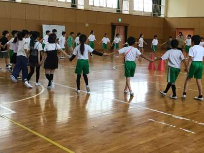 キャンプファイヤーで踊るマイムマイムの練習をしていました。