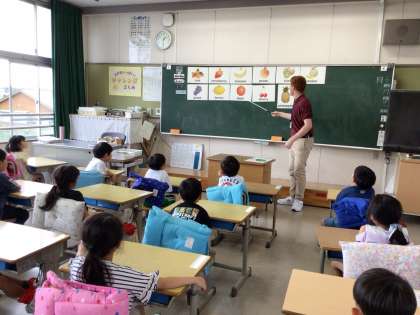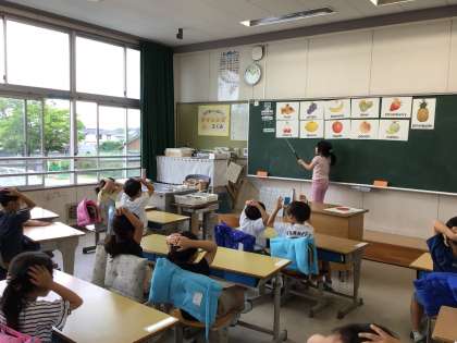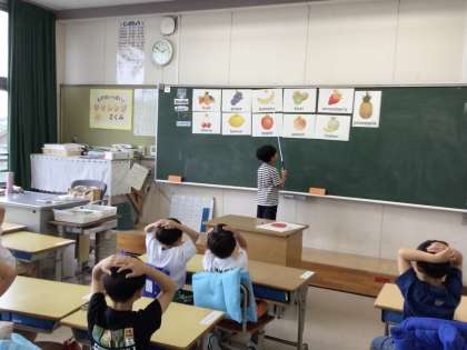 ALTの先生といろいろなフルーツの言い方を学習しました。フルーツの言い方を覚えたあとは、ゲームをして楽しみました。