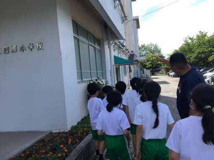 4年1組の授業の様子です。ツバメの巣を観察しました。(写真でどこにあるか探してみてください)このツバメはこれからどうなっていくのでしょうか。理科の見方を育くんでいきます。