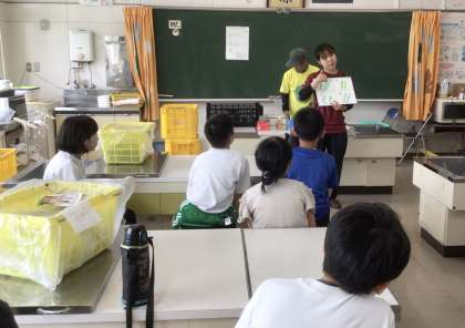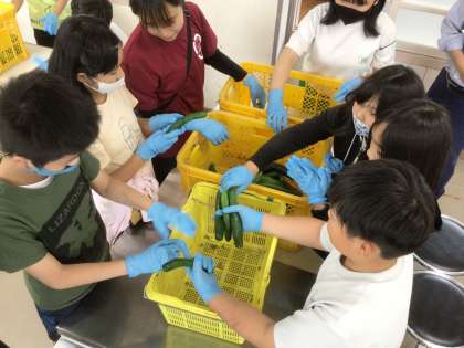 キュウリとズッキーニの選別や、袋詰めの作業を体験しました。袋詰めをしたズッキーニは、スーパーやまのぶで販売されます。商品になるものだと聞いて、子供達は、とても慎重に作業をしていました。