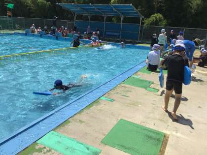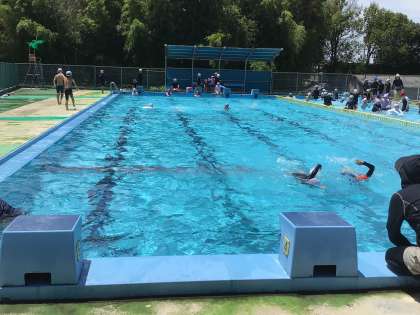 2チームに分かれて練習しました。今日もボランティアさんが、プールサイドに水を撒いたり、ゴミを拾ったりしてくれました。