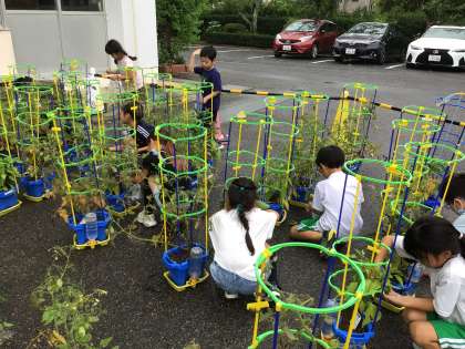 生活科で育てている野菜に元気な実が実り、順番に収穫しています。