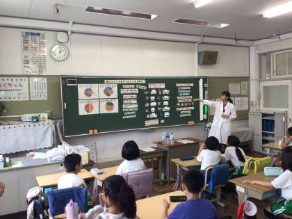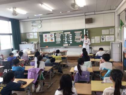3年2組の授業の様子です。おやつについて、栄養教諭から学びました。