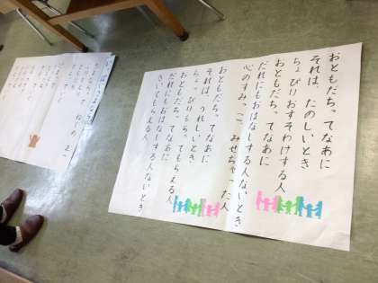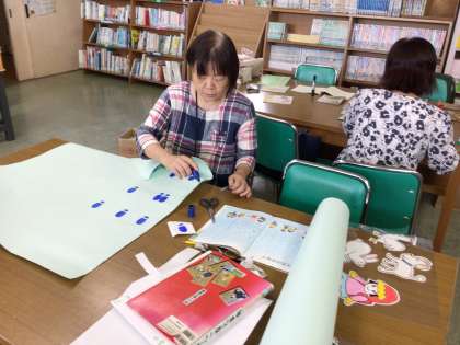 本日も朝から玄関や廊下の掲示物を作成していただきました。模造紙大の掲示物が次々に出来上がっていきました。ありがとうございます。