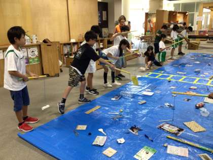 エコットでは、防災学習センターでは、1日に出るゴミの量を実際に持ってみたり、燃やすゴミの燃焼溶融炉を見学したりしてきました。矢作川に流れるゴミを釣って分別ゲームも楽しみました。