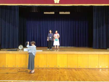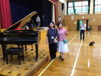 創立50周年記念ソングを作るために、まずは四郷小学校のみなさんに会いに来てくださいます。今日は、その打ち合わせと会場の下見のために、若渚さんとお母様が来校なさり、入念にチェックをしていました。いよいよ来週の木曜日です。楽しみですね!