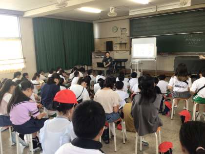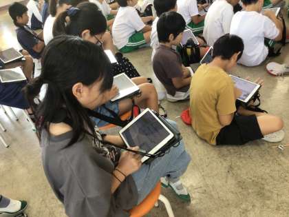 無門福祉会の方に来ていただき、福祉について話を聞きました。学習用タブレットにメモをするなど、しっかりと話を聞く姿に感心しました。この後、無門福祉会に行きます。