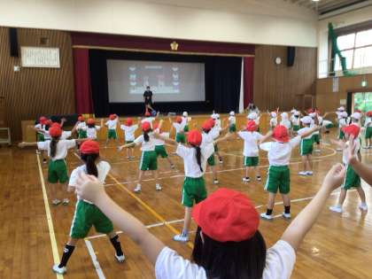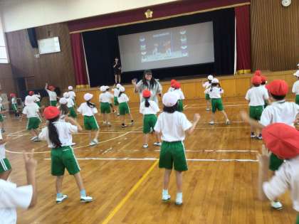 運動会練習の様子です。元気よく踊る2年生は輝いています!