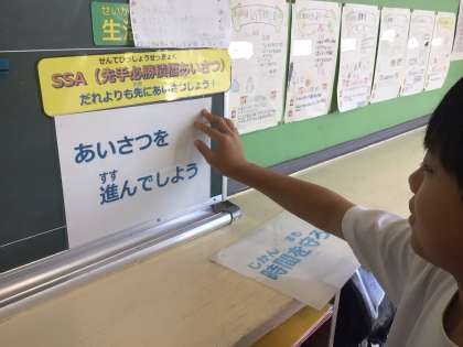 10月になりました。10月の生活目標は、「あいさつを進んでしよう」です。読書の時間に、生活委員が各クラスに目標を伝えにいきました。目標にあるように、SSA(先手必勝積極あいさつ)を続けていきます。加えて、「いつでも」「どこでも」「だれとでも」を意識してあいさつをしていきましょう。
