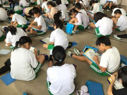 4年生、今日から読書感想画スタート!今日は、3つのお話を聞いて、どんなふうに感じるか話し合ったり、イメージ画を描いてみたりしました。来週から本格的に描いていきます。