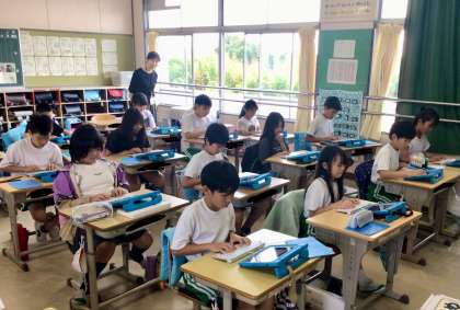 ICT支援の先生に来ていただき、タイピング練習の授業を行いました。回数を重ねる度に、少しずつスコアが上がり、やる気アップで取り組んでいました。