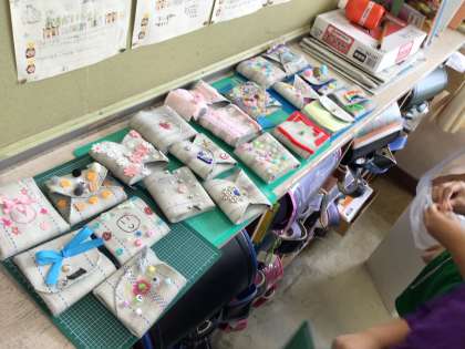 豊田北消防署員の力を借りて、廃棄されるホースを小物入れにリユースしました。作品は井郷コミュニティー祭りで展示しています。ぜひ、ご覧ください。
