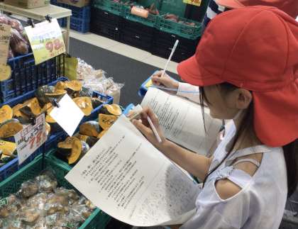 校外学習でスーパーやまのぶに行きました。お店の方にインタビューをしたり、お仕事の様子を見たりすることを通して、スーパーの工夫を学びました。