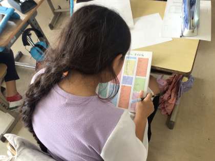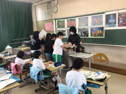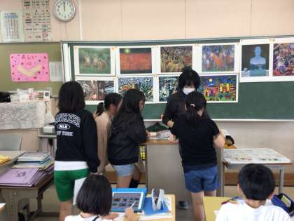 4年2組の授業の様子です。読書感想画に取り組んでいます。