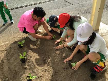 10月18日 白菜の苗を植えたよ(7、8、9組)