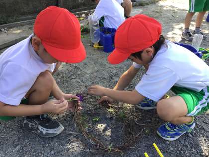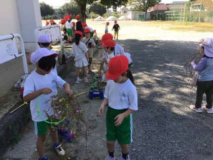 自分で育てたあさがおのつるを使って、友達と協力しながらリースを作り、あさがおに親しみました。