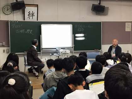 下古屋と天道からゲストティーチャーをお招きし、町変遷についてお聞きしました。地図や写真の資料を見て、今もあるもの、無いものを知りました。これから総合的な学習の時間を使って、四郷の町の歴史を深掘りしていきます。