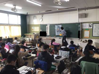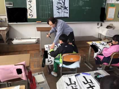 3年1組の書写の授業です。書写ボランティアの方が丁寧に教えてくれました。書初めにむけて、これからも各クラスで教えてくださいます。ありがとうございます。