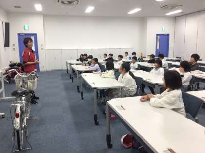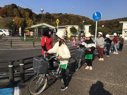 大型車による巻き込み実験を見たり、自転車の危険について考えたり、走行練習をしたりしました。