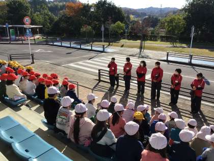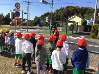 豊田市交通安全センターで、横断歩道の渡り方について学習してきました。横断歩道での確認の仕方や、道の安全な歩き方について練習しました。飛び出し実験を見てから、みんなで「道路には飛び出さない」と約束しました。