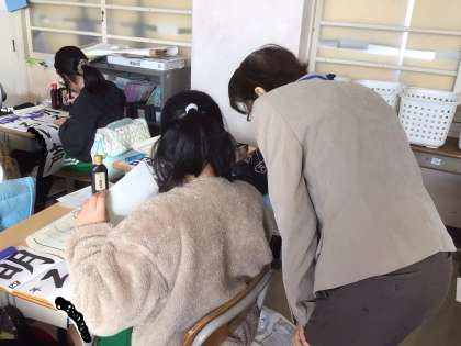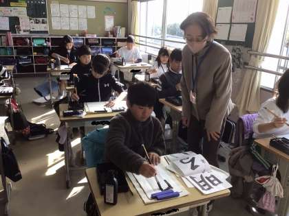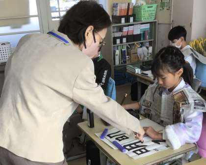 書き初めのコツを教えていただきました。