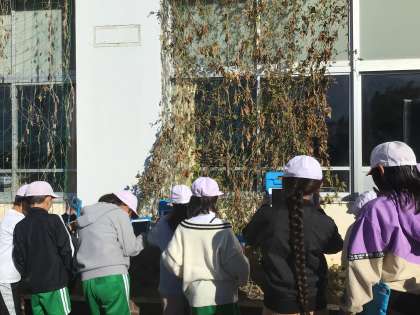 4年2組の授業の様子です。冬の生物の単元の学習をしています。ツルレイシ、サクラを観察・学習用タブレットで撮影し、ノートにまとめました。