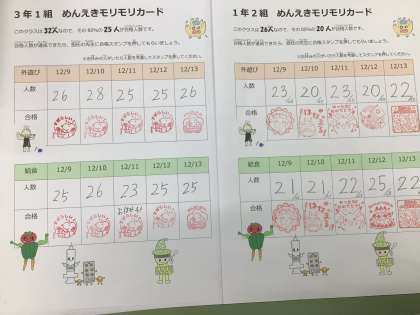 保健委員会が企画した「めんえきモリモリ大作戦」。週間中は毎日多くの児童が運動場に出て遊んでいました。給食完食(食前に減らすのはOK)できた児童もたくさんいました。