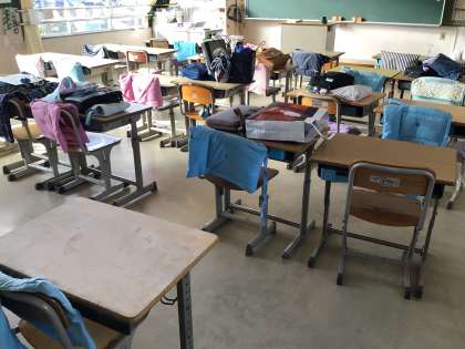 インフルエンザ等、熱症状のため欠席者が多数出た学級は、本日から休業となりました。そのまま冬休みに入ります。それぞれの教室には、昨日欠席した児童のものが残されていて、とても寂しく感じました。本日も欠席者が増えました。後1日。学校も予防に心がけます。
