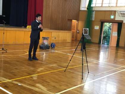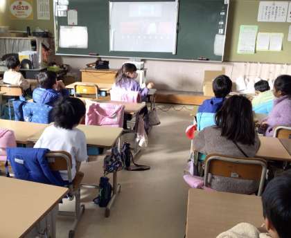 本日は70人の児童が欠席、3つの学級が学級閉鎖のため、初めてオンライン集会をしました。どの学級でも、児童は食い入るように画面を見ていました。生徒指導から冬休みの過ごし方、2年生が町探検についての発表をしました。これからは、集まらない集会にも取り組んでいきます。