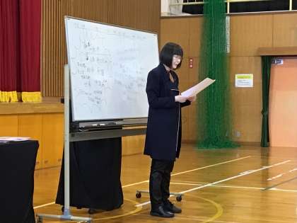 壁画家松井エリコさんの講演がありました。お母さんが松井さんに向けて書いた手紙や、自身が制作した紙芝居を読んだりして、平和について考えました。