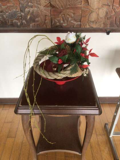 只今、正面玄関にとても立派で、すてきなお正月のお花が飾られています。本校はあとラウンジスタッフの岸本ユミ先生の手作り作品です。ご来校の際は、ぜひご覧ください。