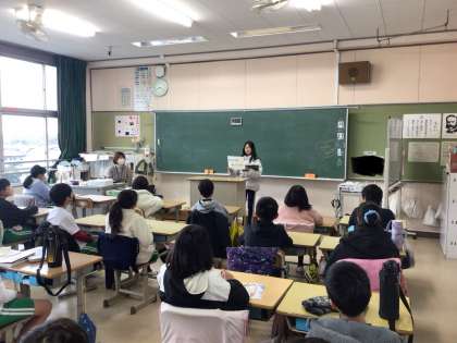生活委員の児童が2月の生活目標を伝えました。2月の生活目標は、「あいさつを進んでしよう」です。四郷小に、気持ちのよいあいさつを響きわたらせます。