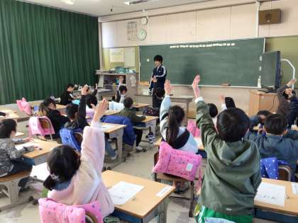 にこにこしごうの日(2回目)「気持ちのいいあいさつをしよう(1.2.3年生)、目上の人へあいさつをしよう(4.5.6年生)」について学びました。ふだんから意識しているあいさつについて、一人一人改めて考えることができました。目上の人へのあいさつについて考えた4年1組では、目上の人へは敬語を使うこと、動作をつけることなどが違うことを見つけました。また表情や言い方によって、相手に与える印象が変わることにも気づきました。SSA(先手必勝、積極、あいさつ)も合わせて意識していきます。