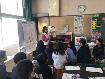 5年1組、2組の様子です。単元「人のたんじょう」を学んでいます。今日は、養護教諭の加藤光咲先生の読み聞かせや話から、受精や胎児の成長などを保健分野の視点で学びました。