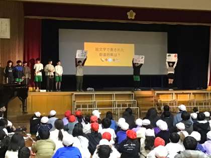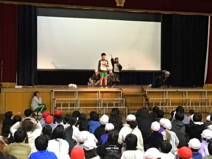 4年生は、都道府県クイズを出題してくれました。最後には、都道府県名ソングを披露してくれました。