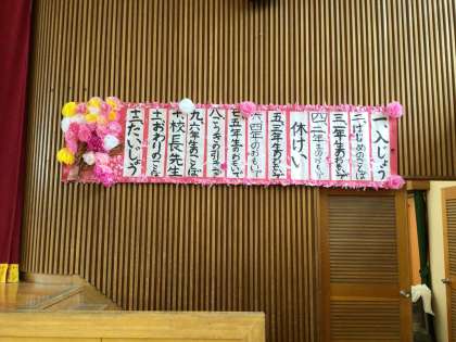 2/28 6年生を送る会10 公開日 2025/02/28 更新日 2025/02/28 学校行事 1年生からのメダルのプレゼント、大切そうに首からかけています。2年生は輪飾り、3年生はペーパーフラワー、4年生は招待状を作り、この会に花を添えました。5年生は、この会全てに全力で関わりました。最後は、ペーパーシャワーのプレゼントで退場です。6年生を送る会、大成功!万歳🙌