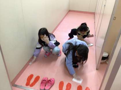 ワックスがけのため、教室から全て運び出し、雑巾掛けをしていました。トイレでも床磨きをしてました。学年末を実感する毎日です。
