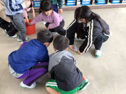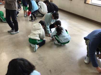 1年生の教室のワックスがけをするため、1・6年生合同で大掃除をしました。