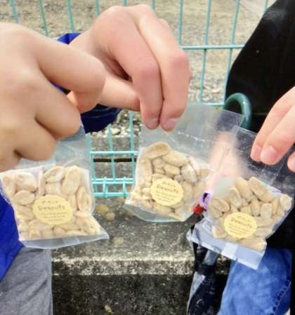 3月8日に、「むもんカンパニー青い空」で「無門市」が開かれました。JRC委員は、この1年間、無門福祉会との交流をしてきました。春に落花生の種を蒔き、秋に収穫をし、冬に選別作業を行った落花生が、「シュガーピーナッツ」という商品となり、無門市で販売されました。この日、無門市を訪れたJRC委員は、この「シュガーピーナッツ」をプレゼントされ、大喜びでした。