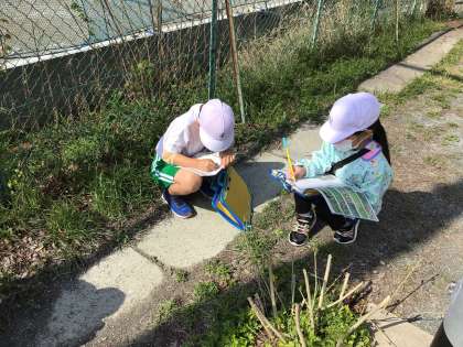 草木の少ない四郷小でも、10種類以上を見つけることができました。あっという間に時間が過ぎてしまうほど、自然観察に夢中になっていました。