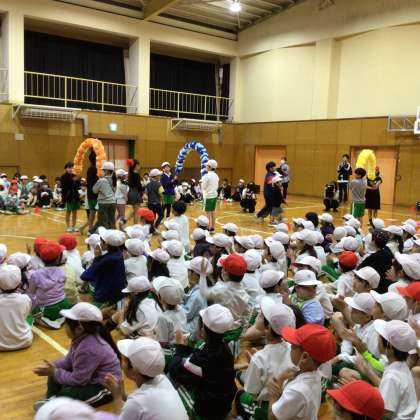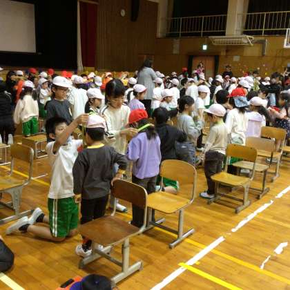最後にメダルをもらい、どの子もうれしそうでした。飾りつけは5年生が中心にしました。