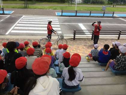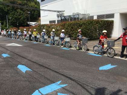 交通安全学習センターで、自転車の乗り方や点検の仕方を勉強しました。「ぶたはとしゃべる」の合言葉、完璧に覚えました。これからも交通安全に気をつけて、安全に自転車に乗りましょう。