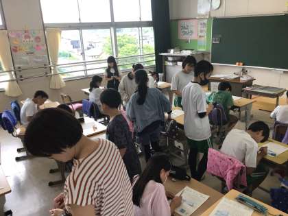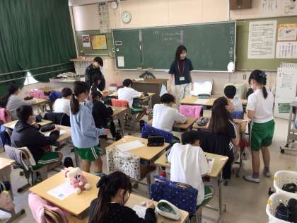 本日は「にこにこしごうの日」です。各学級で、SST(ソーシャルスキルトレーニング)を行いました。今回は、自他を大切にする行動や他者とのかかわり方を学ぶことを目的に、「いいことみつけ」を行いました。各クラスの個性があふれ、真剣に取り組むことができました。写真は6年生の様子です。