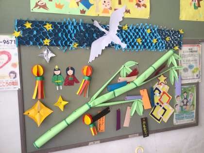 掲示ボランティアの方に作成していただいた、新しい掲示物が加わりました。写真1枚目は今回、写真2枚目は前回作成してくださいました。七夕、梅雨と季節に合った素敵は掲示物をありがとうございました。