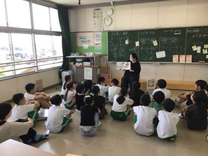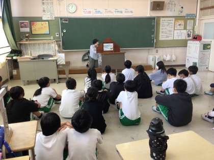 給食後に、読み聞かせボランティアの方による読み聞かせがありました。集中して聴く四郷っ子の姿が見られました。写真は6年生の様子です。