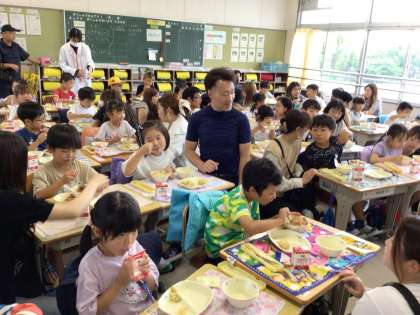 いつもより張り切って食べていた子どもたち。保護者には家庭科室でゆったりと食べてもらいました。みなさんに「おいしい」と喜んでもらえました。